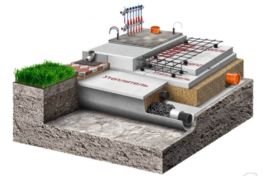 Конструкция, которая выполняет функцию основания и перекрытия первого этажа, установка системы "теплый пол".